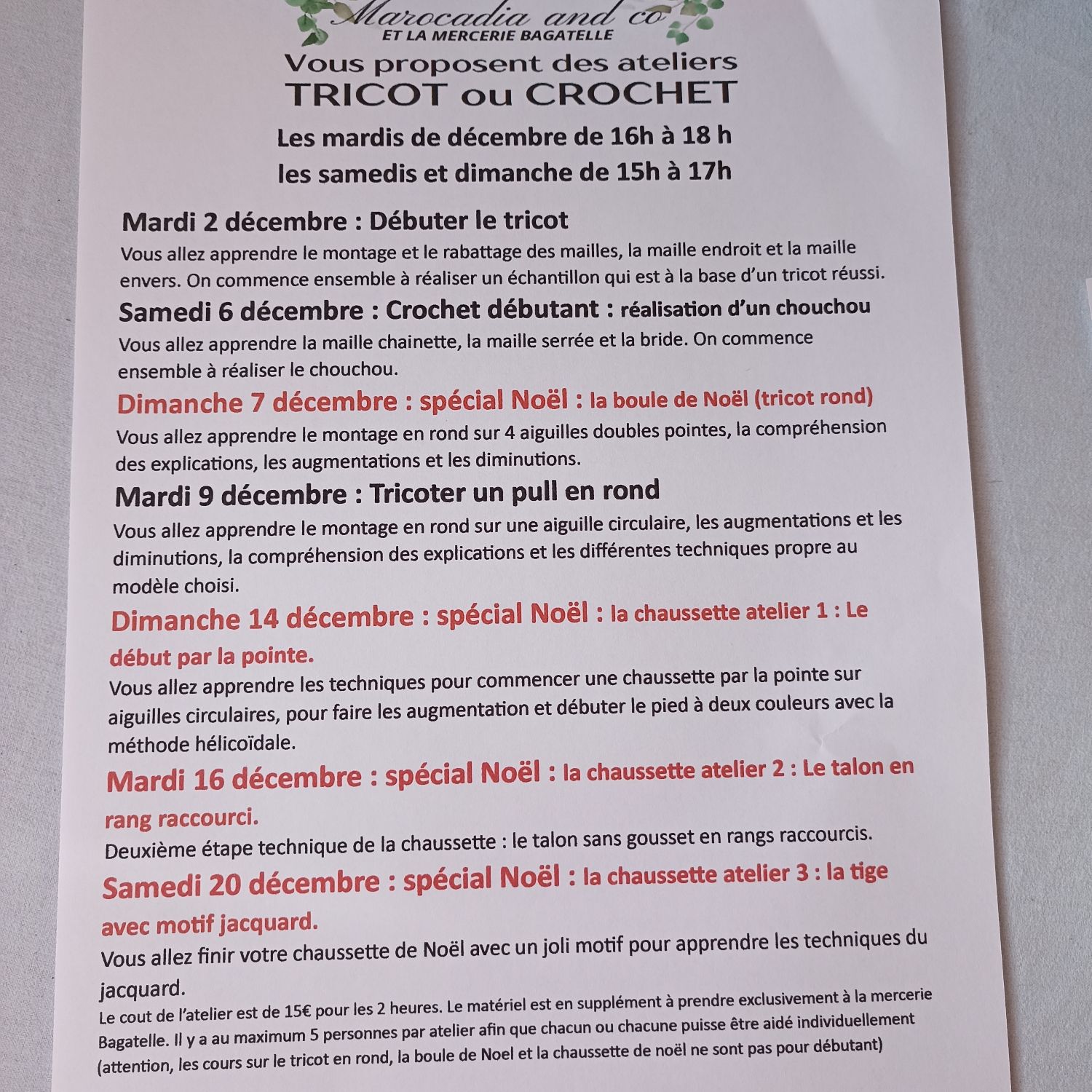 Décembre c’est également des ateliers :