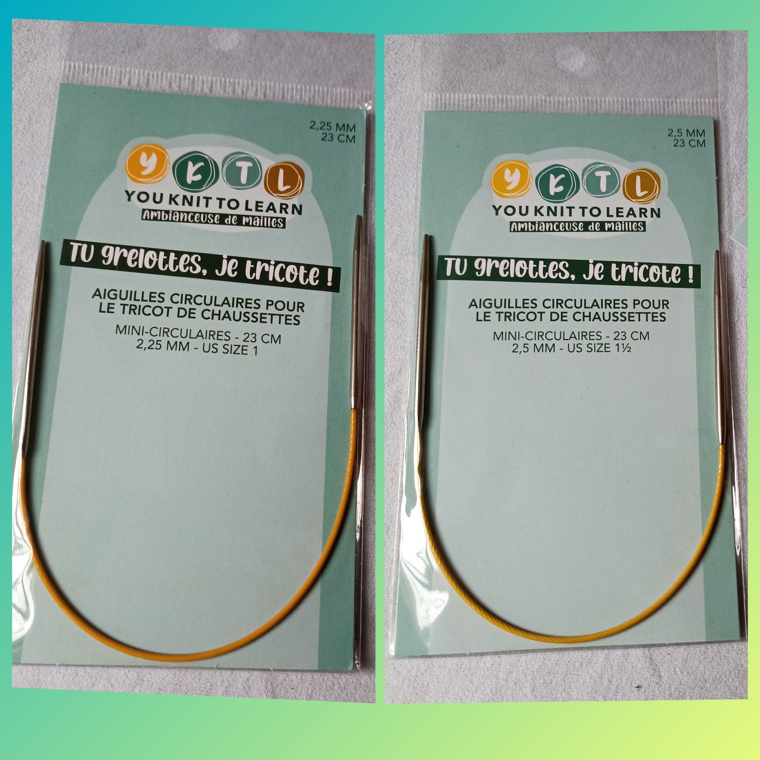 Aiguilles à tricoter les chaussettes de You Knit To Learn avec un cable de 23 cm pour faire du tricot en rond avec mini circulaire