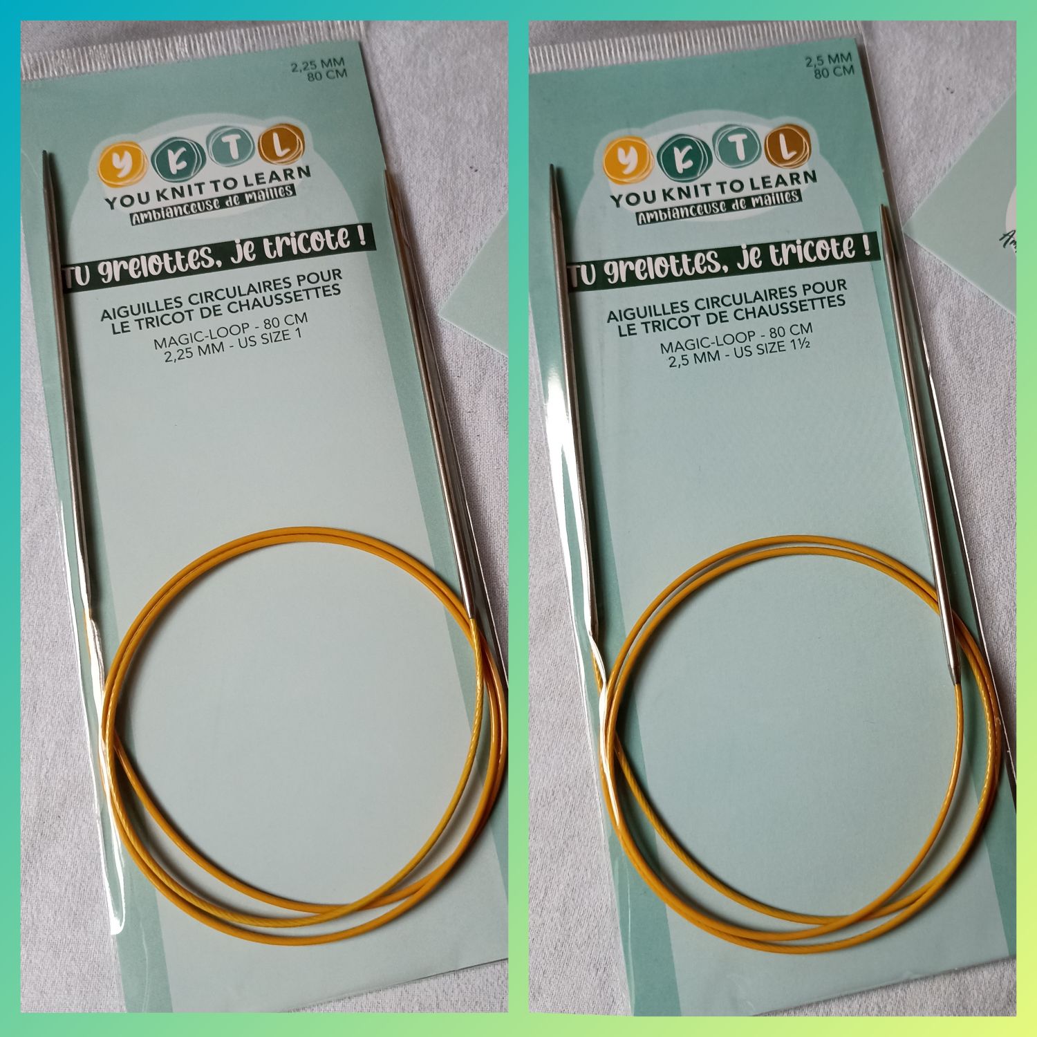 Aiguilles à tricoter les chaussettes de You Knit To Learn avec un cable de 80 cm pour faire du magic loop.