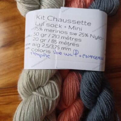 Le kit laine est composé de 3 écheveaux de lyl socks 75% mérinos SW et 25% nylon