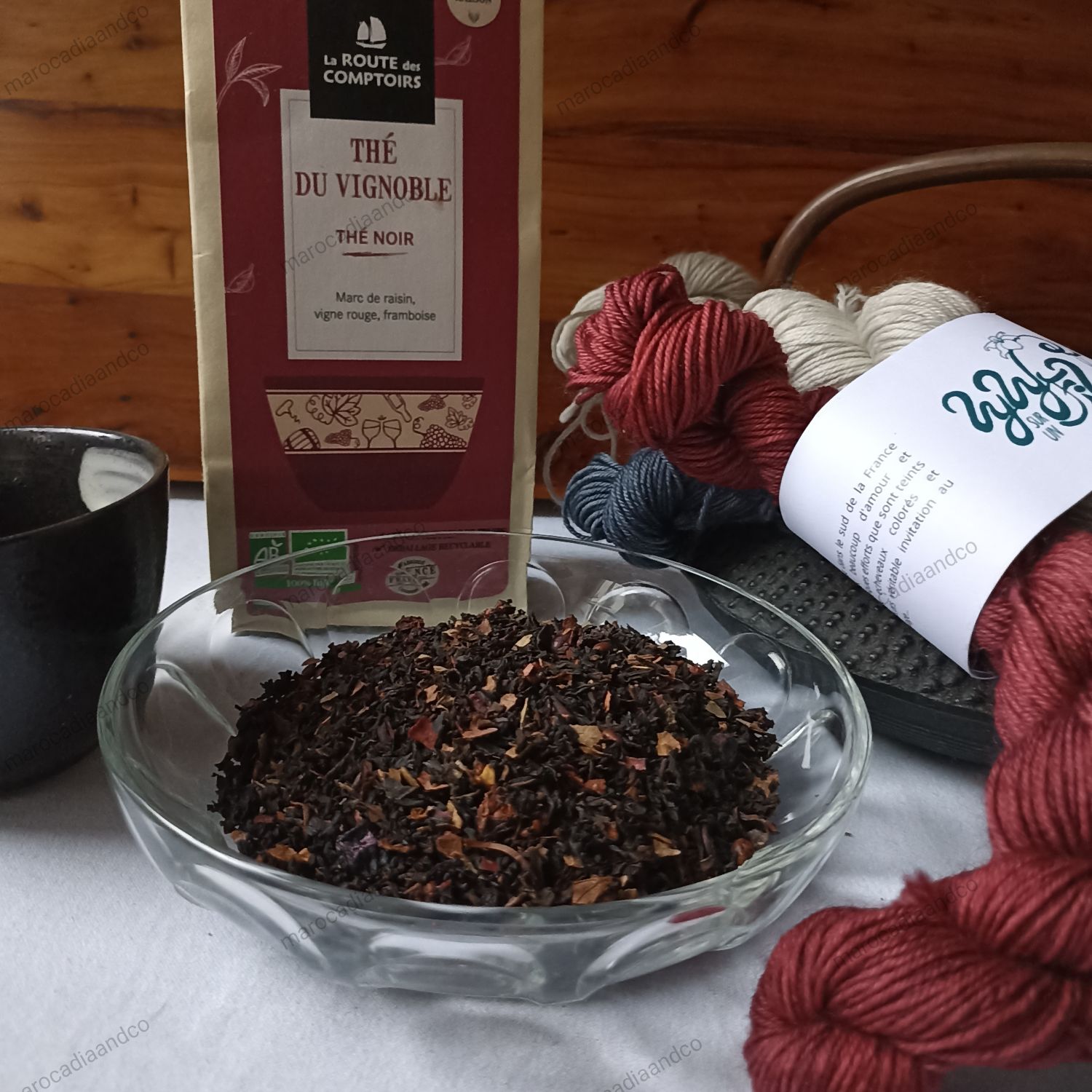 Thé noir à la vigne rouge, au marc de raisin et à la framboise