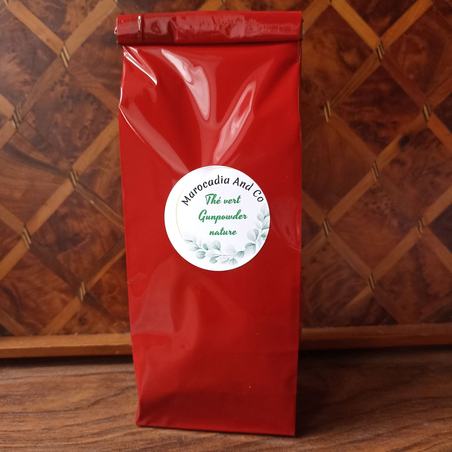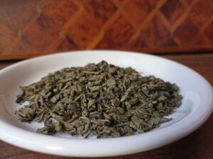 Ce thé vert Gunpowder est de haute qualité avec des feuilles enroulées et un gout légèrement amer.